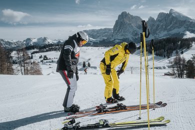 Alla nostra scuola sci a Ortisei, Val Gardena, siamo sinonimo di qualità. Sia in lezioni individuali che di gruppo, ti insegneremo le tecniche giuste con professionalità, ma sempre col sorriso. I principianti sprovvisti di attrezzatura possono prenderla in prestito presso il nostro noleggio, annesso alla scuola.